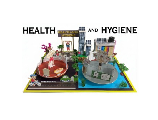 Abstarct – This interactive “Health and Hygienic project” project demonstrates the pillars of a healthy lifestyle by mounting eight distinct zones onto a 3D rotating circular base. The model features miniature dioramas for Yoga and Exercise to show physical fitness, alongside a Healthy Foods section displaying colorful fruits and vegetables. It emphasizes personal grooming through models of Daily Toothbrushing and Nail Cutting, while highlighting sanitation via a miniature Toilet and proper Dustbin Use for waste management. A peaceful bedroom scene represents Better Sleep, completing the cycle of holistic health. By rotating the base, viewers can see how physical activity, nutrition, and hygiene routines work together to prevent illness. This visual aid serves as a comprehensive tool to educate students on the importance of maintaining both internal health and external cleanliness. The project is finished with vibrant colors and clear labels to make each habit easily identifiable and memorable.