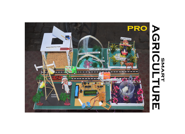 | Packet contents | Complete circuit with moisture sensor,solar cell,5v adaptor,dc pump,fan,servo motor, sms module,irrigation field,background |